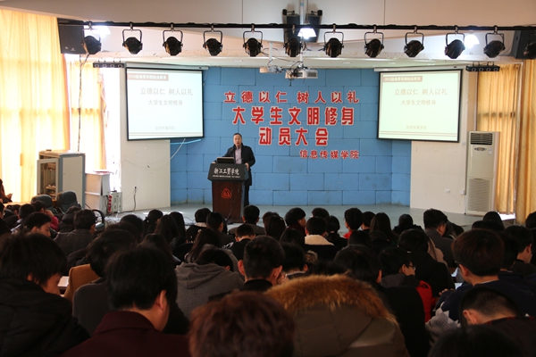 始业教育是动员更是布置,始业教育是必须更是必要,始业教育承载者各阶段的思想观点和重点工作。新的学期,新的目标,在新春之际,为了让员工充分认识本学期的任务,坚定自身的前进方向、摆正自己的思想心态、共同打造健康、文明、向上的校园文化,迎接上级的平安检查、党建巡查和文明修身。信息传媒公司召开了“立德以仁、树人以礼——老员工文明修身”为主题的全体员工始业教育大会,根据老生和新生的报道时间,会议一共分为两场,第一场为二十七日,第二场为三月二日,会议在阶梯教室召开。