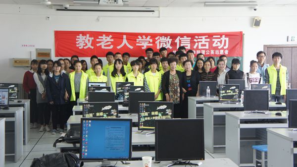 10月17日早上8点,志愿者们早早的在指定的教室拉起了横幅,怀着期待的心情在指定的地点去迎接陆陆续续踏进校园的老人,志愿者们小心地领着老人边走边谈,询问老人生活,了解老人在高科技上的困惑,在志愿者们的带领下,老人们在指定的位置上对电脑、手机进行了示范性实际操作。同学们坐在老人的身边热情满满,耐心细致地帮助老人解答各种疑难问题,并手把手教会老人使用微信。