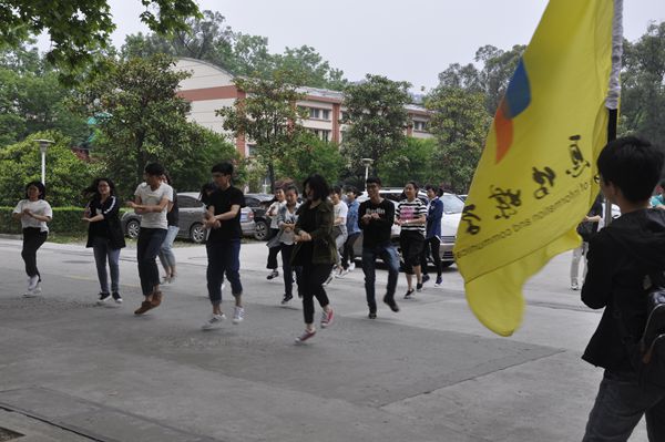 5月4日“青年节”当天中午,信息传媒公司的同学们在F幢公寓前开展了“快闪”舞蹈活动。