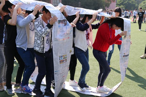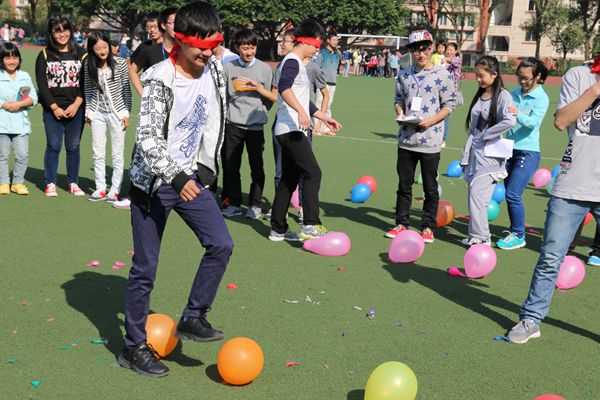拓展活动由“踩地雷”、“抛绣球”、“九人十足”、“无敌风火轮”、“你比划我来猜”和“运输乒乓球”等项目组成。活动伊始,“踩地雷”处一大批同学各自忙活了起来,一些同学负责指挥,一些同学负责踩气球,“啪啪啪”的气球爆破声四处响起,阳光照耀着大地,同学们的笑声响彻天空;在“抛绣球”项目中,同学俩俩搭档,抛出了一段段优美的弧线;“你比划我来猜”则让同学们真正体会到了什么叫默契。场上最热的项目非“九人十足”莫属,期间不时传出响亮的“一二、一二……”,活动中有些同学跌倒了,周围的同学都捏了一把汗。但跌倒又如何?同学们爬起来照样干!节奏乱了又如何?同学们调整之后照样大步向前!大家在活动中欢笑出了自己的青春,也展示了个人的风采以及团队的合作能力。
