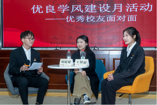 活动伊始,两位同学分别介绍了自己大学期间的学习经历、学习体会以及学习成果,她们不管是专业学习还是实践活动方面都十分的优秀,成果丰硕,在场的同学发自内心的感到钦佩。