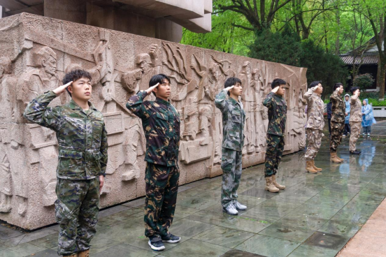 在献花仪式结束后,同学们参观了陵园内的烈士墓区,瞻仰了烈士们的生平事迹。退伍学子结合自身的军旅经历,向同学们分享了自己对革命精神的理解和感悟,鼓励大家要铭记历史,珍惜当下来之不易的幸福生活。全体退伍学子向烈士纪念碑敬礼,向革命前辈致以崇高的敬意,展示出退役不褪色的精神。