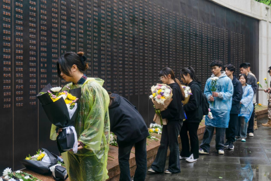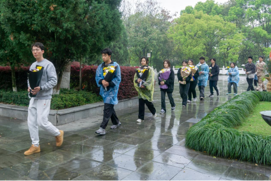 当日细雨绵绵,微风拂面,同学们在辅导员张赛举老师的带领下手持鲜花,怀着敬仰之情,踏上了前往翠微山烈士陵园的路程。一路上参军及退役学子工作室的退役老员工为同学们讲述着革命先烈的英勇事迹,同学们被无数英雄烈士以鲜血和生命铸就了波澜壮阔的伟业,无数先锋模范,以智慧和汗水为国家富强、民族振兴写了可歌可泣的壮丽篇章深深感动。