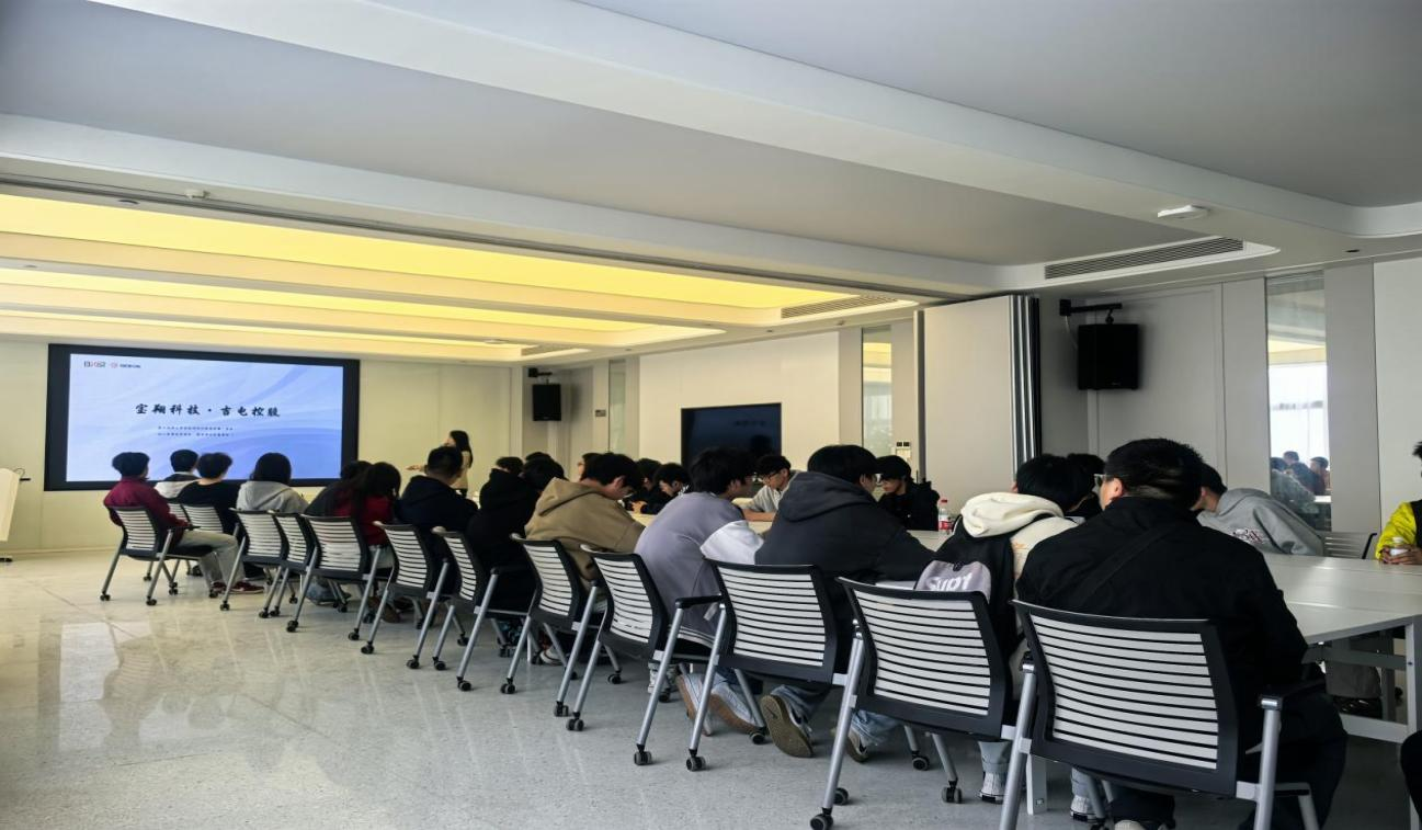 最后,师生们还与企业负责人进行了深入的交流,并集中观看了该公司最新宣传片,浙江吉电控股有限公司董事长陈民涛对员工们进行了简短而热烈的欢迎致辞,并详细介绍了企业的发展理念和公司的人才培养路径等情况,并鼓励新生们要努力学习专业知识,培养创新思维和实践能力,期待未来可以与同学们共事。