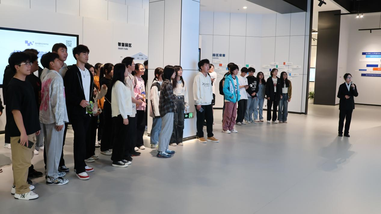 在软件谷工作人员的精心安排下,师生们首先实地参观了温州国际云软件谷路演中心,详细了解国际云软件谷战略定位、组织架构、建设成效、入住企业等方面的情况。随后,师生们来到了温州国际云软件谷展示中心,认真观摩各种展品。在讲解员的解说下,师生们不仅了解了许多有关人工智能、机器人视觉、云计算、边缘计算等方面的技术应用,还深刻感受到了企业在创新方面的不懈努力和取得的辉煌成就。