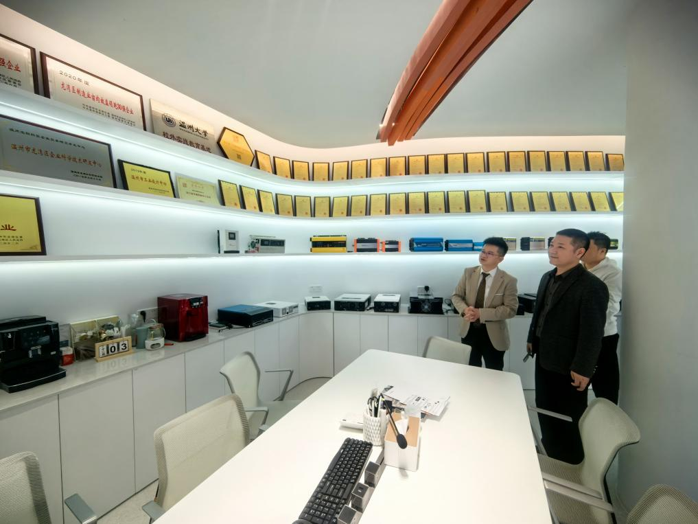 随后陈民涛董事长带大家参观了企业荣誉室、样品室、研发部和质检实验室等企业核心部门。