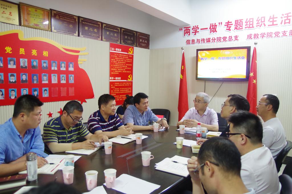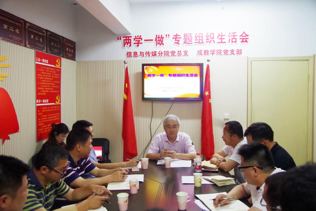 5月31日下午,信息与传媒分公司党总支、成教公司党支部联合召开“两学一做”专题组织生活会,参加会议的有总支委员、支部委员、行政干部,公司领导贺星岳经理莅临指导,纪委委员项光春同志随同参加。