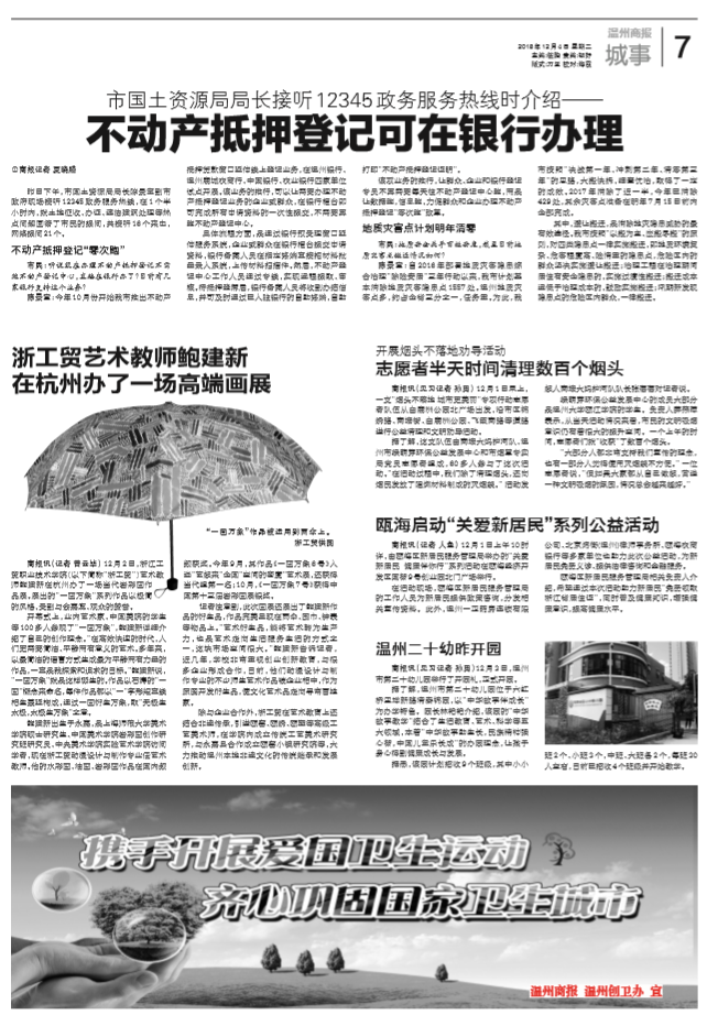 记者注意到,此次画展还展出了鲍建新作品的衍生品,作品完美呈现在雨伞、围巾、钟表等物品上。“艺术衍生品,能将艺术转为生产力,也是艺术走向生活服务生活的方式之一,这块市场空间很大。”鲍建新告诉记者,近几年,公司非常重视创业创新教育,与很多企业形成合作,目前,他们动漫设计与制作专业的不少师生艺术作品被企业相中,作为原图开发衍生品,使文化艺术品走向寻常百姓家。