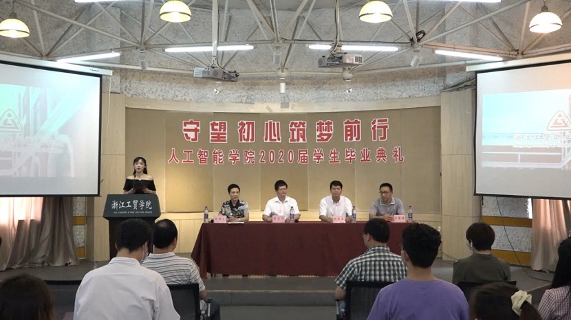 软件教研室主任金慧峰老师,作为教师代表发言。金老师对同学们表示了肯定和鼓励。人工智能专业是未来的朝阳产业,是求职热门,5G建设是新型基础设施的重要组成,是国家战略,而我们的同学正是专业对口的建设者;希望同学们担当时代责任,做最美追梦人。