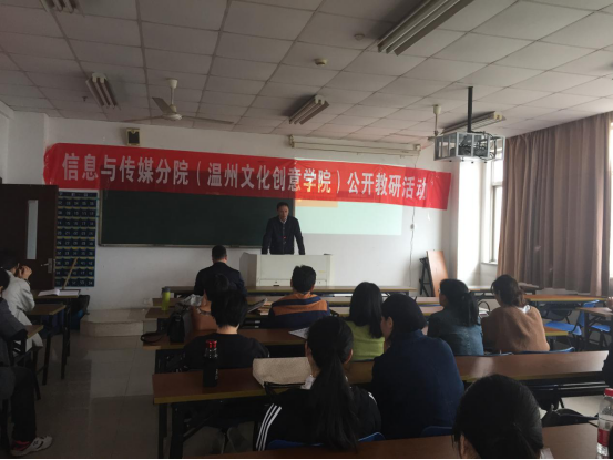 为了提升教师专业化水平,提高教研活动质量。信息与传媒分院(温州文创公司)于2017年11月10日下午13:30在6712教室开展广告设计与制作专业公开教研活动。活动由分院书记任志杰主持,全体专业教师(有课教师除外)参加此次活动。