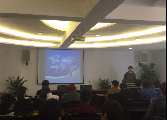 2014年12月25日上午,信息传媒公司举行了2013级计算机应用技术专业“知远班”开班仪式,仪式由信息传媒公司副经理潘修强主持,温州电子信息研究院副经理梅成才、信息传媒公司计算机应用技术专业负责人章增优老师、软件技术研究所所长陈欲勐以及温州电子信息研究院的研发人员出席,2013级“知远班”的全体同学参加了开班仪式。