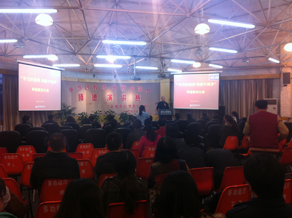 12月12日下午,由工会、教务处、党务工作部联合举办的师德演讲比赛在公司多功能厅举行,14位来自不同院系和职能部门的老师参加了比赛。公司潘修强老师获得了第一名的好成绩,潘益婷老师喜获优秀奖。