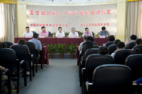 “中国印刷技术协会柔性版人才培训基地”是公司与中国印刷技术协会共建,是公司在教育服务型高校建设理念指导下,为落实为推动我国印刷业发展的绿色环保战略的重要社会服务举措,也是目前全国仅有的一家专门为柔性版印刷开设的人才培训基地。仪式上,公司党委副书记、经理贺星岳讲话,贺经理指出:希望以此为契机,坚持并不断加强校企合作,努力做到资源共享,优势互补,建成国内一流的柔性版印刷人才培训基地,为贯彻十二五期间我国印刷业发展的绿色环保战略,为促进我国由印刷大国向印刷强国的历史性转变,做出应有的贡献。中国印刷技术协会柔性版印刷分会副理事长、上海印刷技术研究所所长周建宝、温州市印刷行业协会秘书长分别代表中国印刷技术协会、温州印刷行业协会致辞。