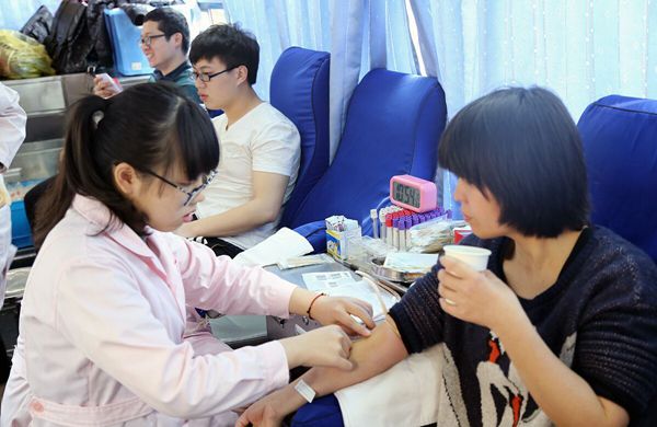 采血现场,师生们有说有笑,一边为自己能对社会做一点力所能及的事感到满足和自豪,同时也用笑语嫣然的心情冲淡采血过程中产生的紧张心理。整个填表、测血压、排队化验过程始终在一种轻松、愉快的氛围中有序进行。通过身体检查合格的师生们更是兴奋不已。