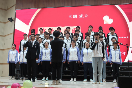 红歌献党环节。《我和我的祖国》,抒情和激情结合,表达了同学们对伟大祖国的衷心依恋和真诚歌颂;《国家》,朴实又具有历史厚重感的歌词,唤起同学们对百年征程的记忆;《没有共产党都没有新中国》,同学们直白而有真诚地表达了对共产党的感激与热爱。《我相信》《精忠报国》《爱我中华》《七子之歌》《少年》都在诉说对祖国母亲的热爱。