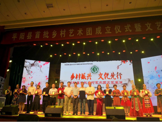 入选logo实际运用:平阳县首批乡村艺术团成立仪式暨文艺展演现场照片