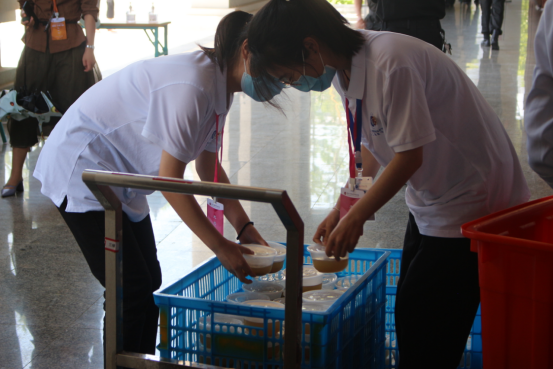 为竞赛的顺利开展,蒲公英志愿者担任了此次的志愿者活动。竞赛前期,志愿者们作为一对一联络人,为参赛院校答疑解惑,如参赛队伍的住宿安排、用餐安排、交通安排。5月8日是竞赛报道日,志愿者们提供接站服务、校园引导、校园参观服务。上午,蒲公英志愿者在灵昆轻轨站等待前来报到的高校队伍,并引导队伍乘坐校车前往酒店。下午,各参赛队伍到达公司后,蒲公英志愿者带领各支队伍对比赛场地进行了熟悉,并参观了浙工贸的校园环境。5月9日,志愿者一早到达体育馆,为参赛队伍提供现场秩序维护、现场检录、午餐分发、洗手间陪同、赛后离场服务。整个大赛过程中,志愿者都用饱满的热情为选手们做好后勤保障,让选手们可以全神贯注参与比赛。