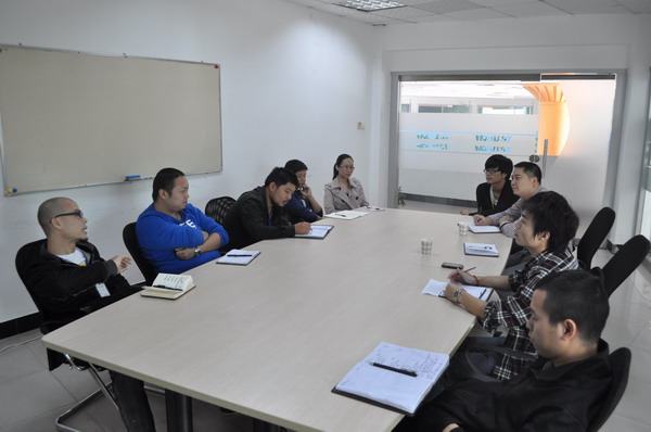 带着这一系列疑问,公司教学督导对公司进行了实地走访。11级动漫67位同学,在江西笛卡传媒有限公司被分为导演组、前期组、中期组、场景组和合成组,每个组跟着各部门总监进行顶岗实习。实习完全采用工学结合的方式进行。前期,员工在各部门总监的指导下对公司已经完成的项目进行模仿、消化;中期进行针对性的创意创新培养;后期,在总监的带领带下与员工完成工作项目。
