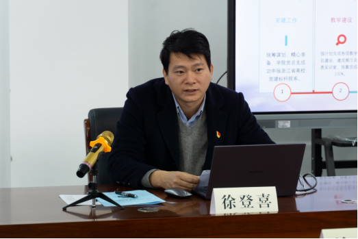 徐登喜书记结合《公司二级党组织工作评价指标自查自评表》,就2021年党建与党风廉政建设工作从五个方面进行了详细的汇报。分别是:公司党建工作总体概况;围绕“明理、增信、崇德、力行”,公司党史学习及十九届六中全会学习教育情况;以省党建标杆院系申报为重点的公司党建“双创”工作情况;公司党风廉政建设工作开展情况;公司党建工作取得的成绩与工作计划等。