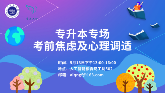 专升本考生考前心理调适活动安排在5月6日和13日,活动由公司“青鸟工坊”组织,邀请“青鸟使者”温州第七人民医院陈浩然医生和叶鑫武医生来院开展专场考前心理调适服务活动,帮助考生缓解考前紧张情绪,增强自信,以最佳状态备考,圆梦专升本考场。