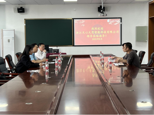 5月27日上午,浙江天心天思智能科技有限公司总经理薛城一行来公司调研交流,太阳集团tyc4633经理赵秀芝、副经理章增优陪同。