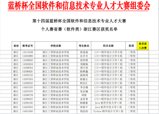 近日,2023年第十四届“蓝桥杯”全国软件和信息技术专业人才大赛个人赛省赛(软件类)落下帷幕,太阳集团tyc4633学子喜获佳绩,16名参赛选手在本次比赛中共荣获二等奖4项、三等奖12项。其中来自软件2109班的陈道磊获得了C/C++程序设计大学 B 组二等奖,超过了大多数的本科员工。