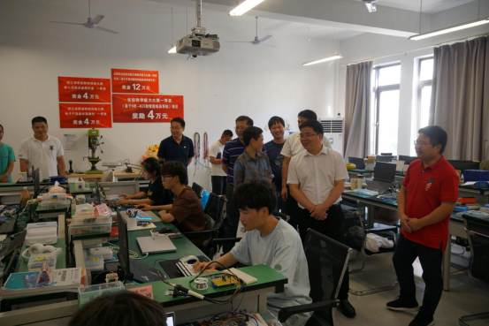 张志东深入走访了公司计算机应用技术教研室、大数据技术教研室、电子信息工程技术教研室、软件技术教研室、人工智能技术应用教研室;此外还走访了大师工作室、青鸟工坊、教学办公室、思政办公室、实训实习办公室等场地;公司领导就公司在党建引领、思政育人、教研室建设、设备及在教学中发挥的作用等方面作了汇报,重点汇报了省标杆院系建设、思政品牌、智能电子工匠坊、现代学徒制教学模式、企业订单班等工作创新点。