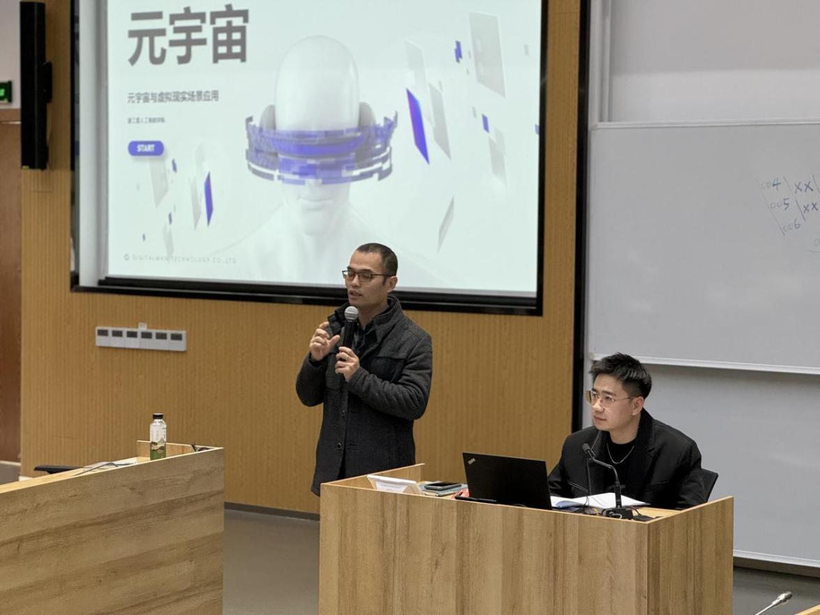 为激发员工对元宇宙和虚拟现实的兴趣和研究热情,增强员工对元宇宙和虚拟现实的基本概念和技术的了解,12月29日下午,公司邀请帝杰曼科技股份有限公司设计技术总监王子旭、品牌推广经理乔安琪等开展毕业设计展主题活动-《元宇宙与虚拟现实场景应用》讲座,讲座由公司副经理章增优主持,部分专业教师、员工代表共100多人参加了讲座。