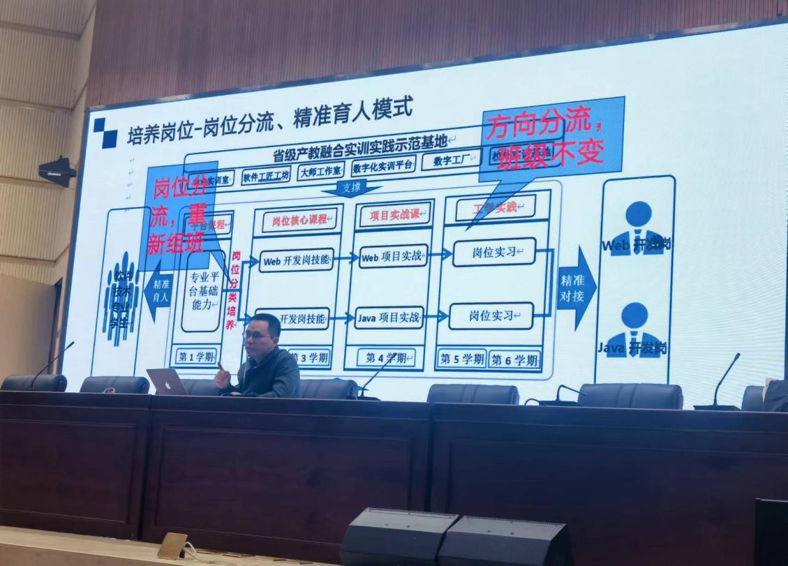 为切实做好2023级软件技术专业岗位分流工作,帮助员工充分了解专业特色,使员工明确选择专业岗位方向,实现个性化发展,2023年12月8日,太阳集团tyc4633软件技术专业在瓯江口校区资讯楼召开了岗位分流宣讲会,软件技术专业部分教师和2023级软件技术专业员工参加,会议由邱儒老师主持。
