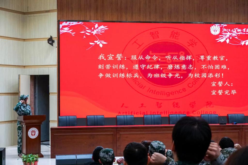 大会最后,林忆轩带领现场参训同学进行军训宣誓,保证以高昂的热情,积极的行动参与到军训活动中,表达了坚决完成军训任务的信心和决心。