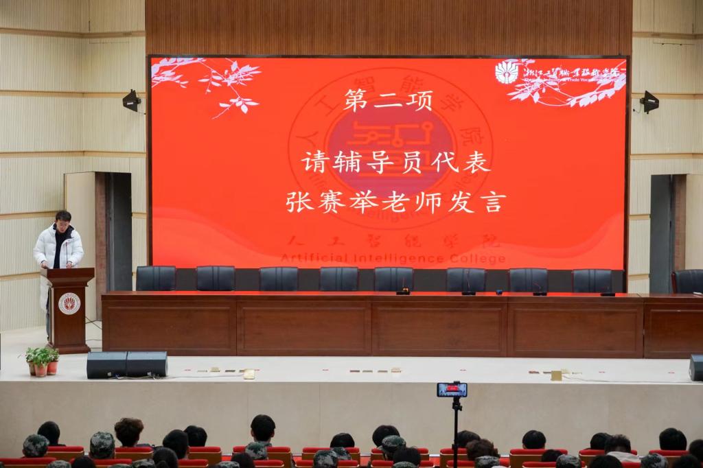 辅导员张赛举老师在发言中明确了军训工作的纪律要求和注意事项,叮嘱同学们军训期间绷紧安全弦,守牢安全底线,在保证安全的同时训出好成绩,好形象。辅导员陈力特老师对即将步入实习岗位的大二同学的实习工作提出了一些建议和要求。