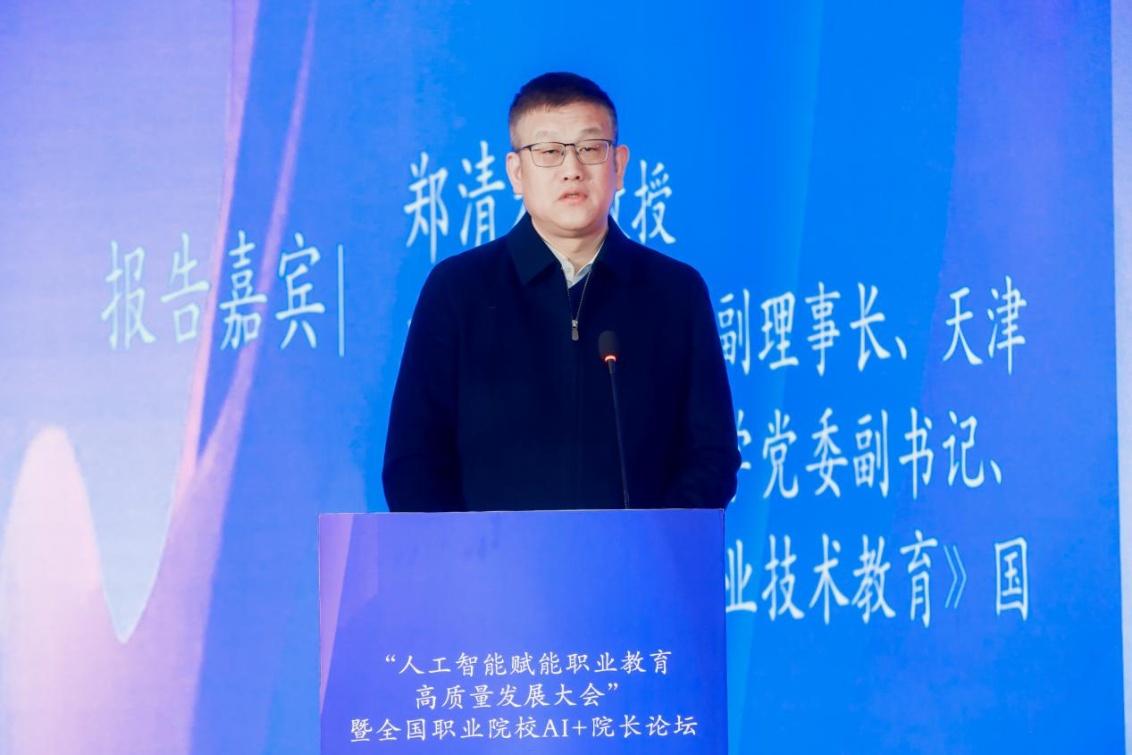 中华职业教育社副理事长、天津职业技术师范大学党委副书记、董事长郑清春教授则介绍了第二届世界职业技术教育大会的盛况,并就AI如何助力职业院校团队培养提升进行了深入浅出的剖析。