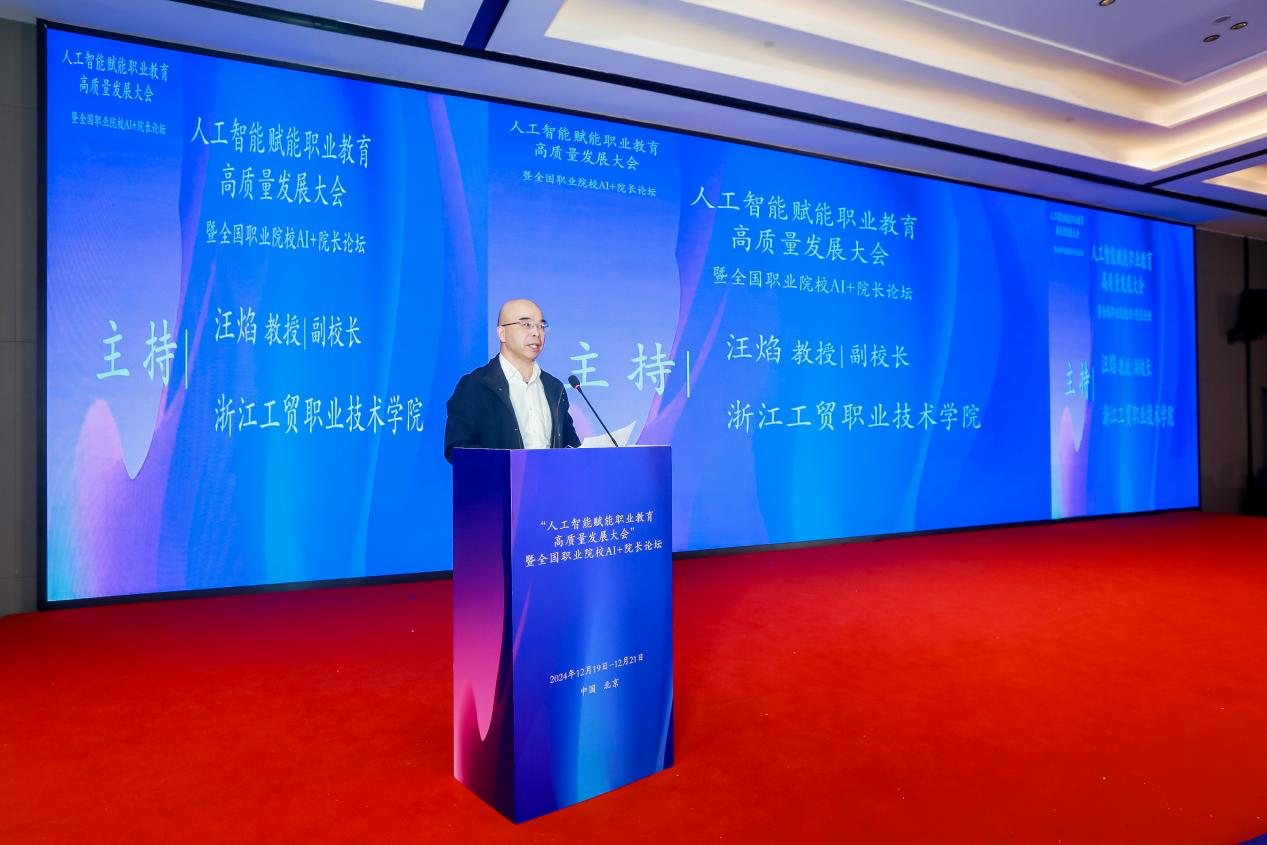 为深入贯彻党的二十届三中全会、全国教育大会及全国职业教育科(教)研工作会议精神,切实落实立德树人根本任务,推动职业教育与新一代信息技术产业需求、地方经济社会发展及人的全面发展深度融合,2024年12月20日,“人工智能赋能职业教育高质量发展大会”暨“全国职业院校AI+经理论坛”在北京隆重举行。教育部职业教育与成人教育司原副司长谢俐、工业和信息化部教育与考试中心主任郝志强、教育部职业教育发展中心办公室副主任黄洋等嘉宾受邀出席并发表致辞,大会第一阶段的主旨报告环节由公司副董事长汪焰教授主持。