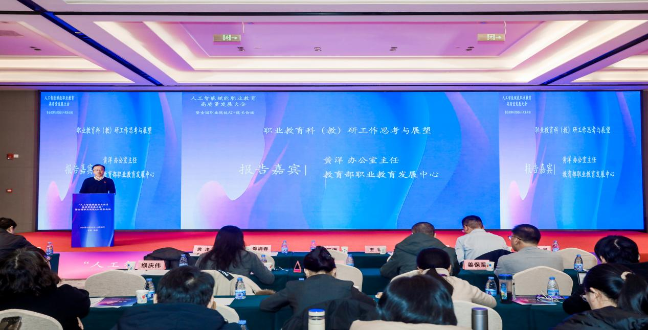 黄洋副主任在主旨报告中以“职业教育科(教)研工作思考与展望”为主题,深入剖析了职业教育要紧跟人工智能发展的时代步伐,深化公司产品改革,构建与新一代信息技术产业需求相匹配的教育体系。他强调,通过人工智能的赋能,职业院校将更好地服务于员工的全面发展,为社会输送更多具有创新能力和实践技能的高素质技术技能人才。