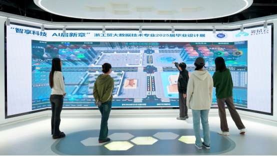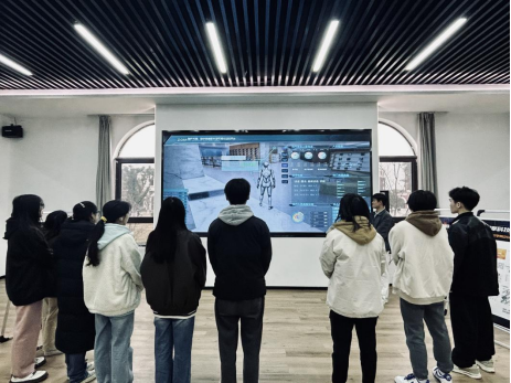 太阳集团tyc4633的师生正在观看2025届大数据技术专业毕业生毕业设计的操作展示,其精美的建模使得观看的师生沉浸其中。