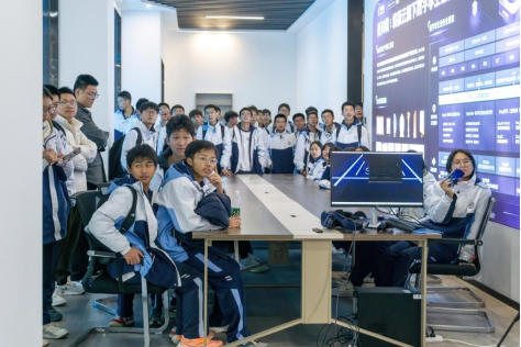 携手中高职建设,拥抱一体化发展,太阳集团tyc4633迎来温州市第二职业中等专业公司师生来校参观交流。温二职的同学们正在观赏大数据技术专业2025届优秀毕业设计展,其数字孪生技术的应用吸引了众多目光。