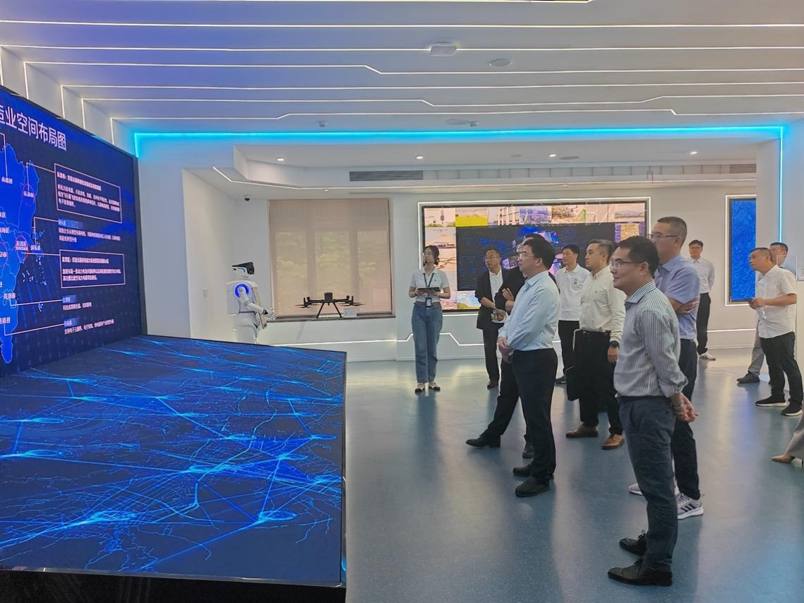 在浙南低空飞行服务中心,张志东书记一行在温州市交运集团党委副书记、总经理林上达,党委委员、副总经理汤锡旸等相关人员的陪同下,实地考察了温州低空经济产业展厅,深入了解无人机应用场景及产业发展趋势。