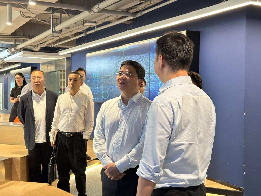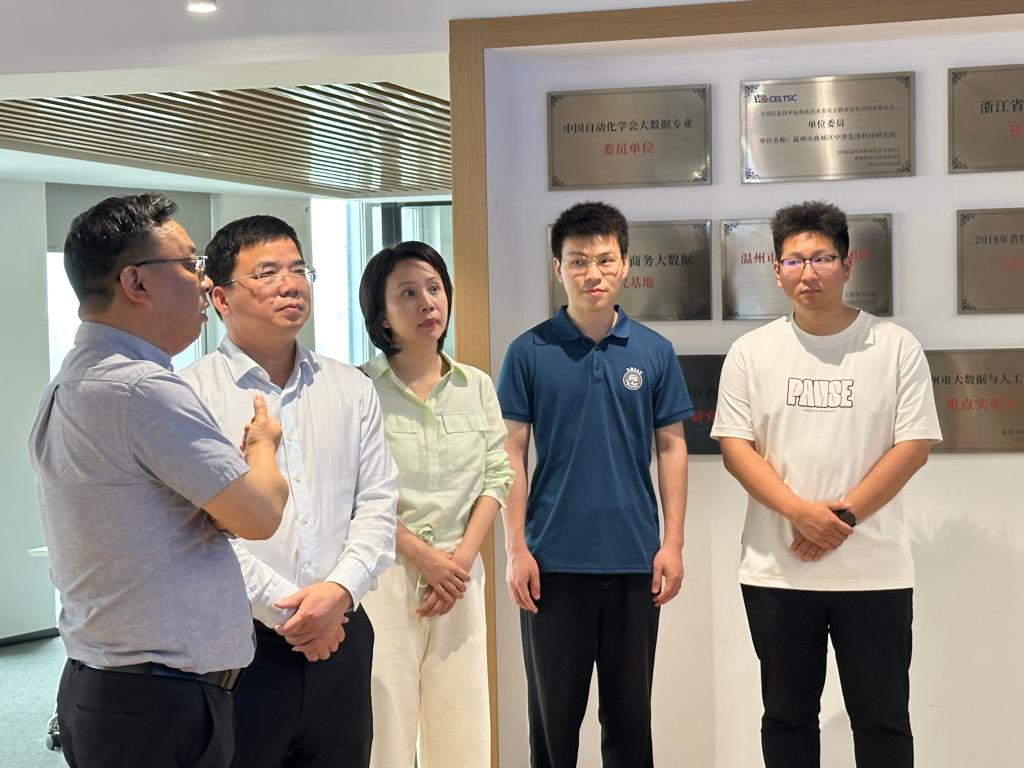 在温州市鹿城区中津先进科技研究院,经理王振宇热情接待了张志东书记一行,并陪同参观了中津研究院展厅,详细介绍了研究院在人工智能、大数据等领域的技术研发成果与产业应用案例。