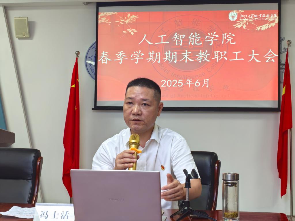 2025年6月30日上午在人工楼414会议室召开2024-2025学年第二学期期末教职工大会,旨在全面回顾公司上半年工作成果,精准规划下半年重点工作方向与任务,进一步凝聚全体教职工的智慧和力量,推动公司高质量发展。公司领导班子成员及全体教职工参加,会议由公司书记冯士活主持。