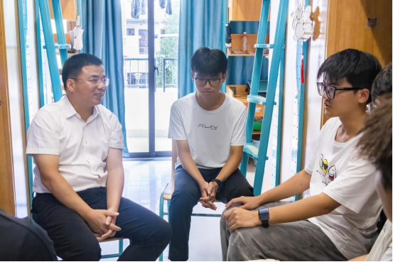 “同学们是哪里人?”“来到公司还适应吗?”“饮食是否习惯?”在交流中,张书记耐心询问了同学们近期的学习状态和生活情况,他仔细询问新生们的校园生活体验、住宿环境感受,认真倾听大家初入工贸时的初心与需求,并鼓励同学们做好学业规划,学好专业知识,努力成长为有扎实技能、有理想抱负的工贸优秀学子。期间,张书记听取了同学们关于食堂饭菜、运动场所和宿舍用电等方面意见和建议,现场协调相关部门尽快改进,确保同学们的学习和生活环境更加优化,真正实现学有所得、心有所安。