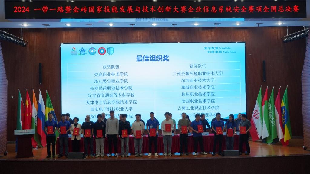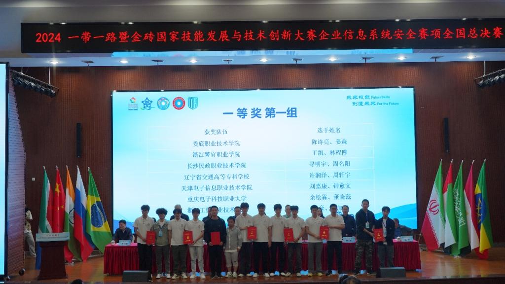 2024年10月14日,2024“一带一路”暨金砖国家技能发展与技术创新大赛企业信息系统安全赛项全国总决赛在湖南娄底职业技术公司圆满落下帷幕。经过数轮激烈角逐与严格评审,公司学子金豪、陆加冕两位参赛选手凭借卓越的专业技能、默契的团队协作以及出色的实战表现,在众多参赛队伍中脱颖而出,成功摘得桂冠,荣获全国总决赛一等奖(金牌),同时公司荣获最佳组织奖,指导教师桂凯也荣获了优秀指导教师称号,为公司、公司赢得了荣誉。