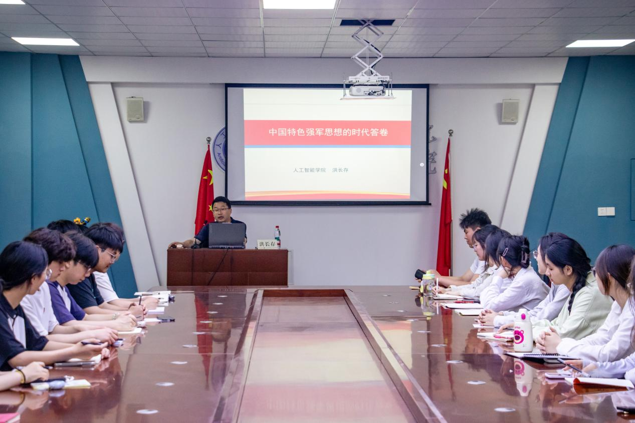 公司党总支副书记洪长存结合当下复杂多变的国际局势,深度解读中国特色强军思想的时代问卷。他系统回溯军事理论发展脉络——从毛泽东军事思想的奠基开拓,到邓小平时期军队现代化理念的革新,再到胡锦涛国防与军队建设思想的深化,层层递进聚焦习近平强军思想,为同学们勾勒出全面立体的理论图景。其间,洪书记着重强调“三个警惕”,引导同学们明晰新时代国防安全的战略支撑意义,强化青年一代的责任担当意识。