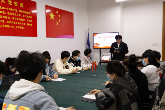 2021年11月30日太阳集团tyc4633员工党支部在人工智能楼402召开关于“学习贯彻党的十九届六中全会精神”学习会,员工预备党员、员工干部参与本次学习会。