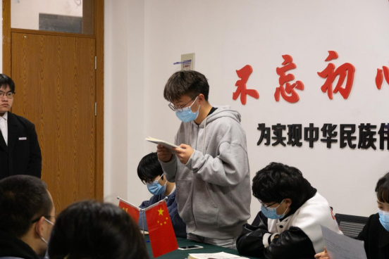 本次学习会第三项议程是由胡沂同学带领大家朗读党中央号召:全党全军全国各族人民要更加紧密地团结在以习近平同志为核心的党中央周围,全面贯彻习近平新时代中国特色社会主义思想大力弘扬伟大建党精神勿忘昨天的苦难辉煌,无愧今天的使命担当,不负明天的伟大梦想,以史为鉴、开创未来,埋头苦干、勇毅前行,为实现第二个百年奋斗目标、实现中华民族伟大复兴的中国梦而不懈奋斗。我们坚信在过去一百年嬴得今伟大胜利和荣光的中国共产党和中国人民,必将在新时代新征程上赢得更加伟大的胜利和荣光。