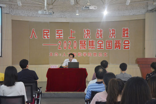 随后,敖祖辉老师就“政府工作报告”和“民法典”相关内容向全体教师进行了解读:一,中国政府敢于直面挑战,取得了来之不易的巨大成就。在政府的领导下,民生得到进一步改善,三大攻坚战取得关键进展、紧急结构和区域布局继续优化、经济运行总体平稳、改革开放迈出重要步伐、发展新动力不断增强 ;二,中国政府部署有力,统筹疫情防控和经济发展。政府以民生为导向守住底线,多措并举,稳住经济基本面,以“两新一重”建设谋划未来,加强交通、水利等重大工程建设、持续发挥投资效能。他把今年的政府工作报告概括为—直面挑战、传递信心、民生导向、部署有力这十六个字。而针对“民法典颁布:新时代中国法制建设的里程碑”这一说法,敖祖辉老师介绍了民法典的编纂历程、基本原则和民法典何以为“典”的三个特征,他强调《中华人民共和国民法典》是新中国第一部以法典命名的法律、新中国截至目前体量最为庞大的法律,被誉为“社会生活百科全书”。这部法典将进一步推动民事权利的全方位保护,为实现“两个一百年”奋斗目标、实现中华民族伟大复兴的中国梦提供更加坚实的法治保障,增进人民福祉、维护最广大人民根本利益等重大意义。