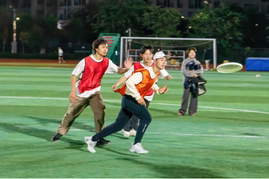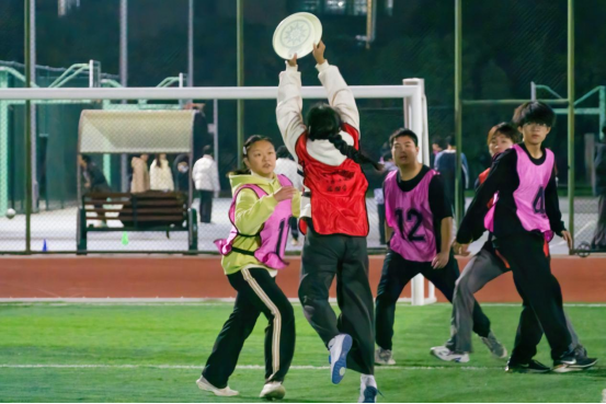 开幕式结束,小组循环赛正式打响,28 支参赛班级队伍分七个小组进行激烈角逐。比赛中,运动员们展现了出色的飞盘技巧和战术配合。他们灵活地在场上奔跑,精准地传递飞盘,每一次成功的接盘和得分都引来观众的阵阵欢呼。比赛中不乏飞扑、腾跃等精彩瞬间,亦有团队成员间心有灵犀的默契配合,充分诠释了飞盘运动的独特竞技魅力与团结协作的力量。