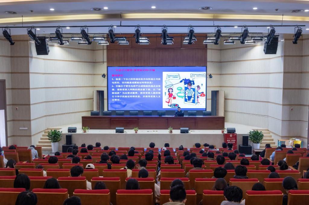 在反诈骗方面,李斌警官剖析了兼职刷单、冒充熟人、网络购物、网游交易、网络交友、“校园贷”、冒充公检法这七类校园常见诈骗手段。他结合实际案例,揭示诈骗分子利用老员工心理弱点实施诈骗的过程,提醒同学们在网络环境中务必保持警惕,不随意透露个人信息,不轻易转账汇款。