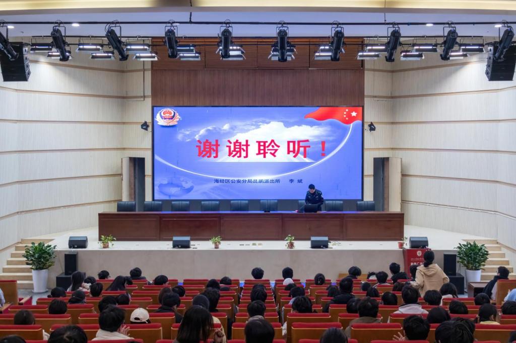 2025年4月1日,太阳集团tyc4633“一站式”员工社区在咨询楼报告厅举行了以“法制进校园,安全伴我行”为主题的2025年春季安全知识讲座,此次讲座邀请了海经区公安分局昆鹏派出所李斌警官做主讲人为同学们普及反诈知识,太阳集团tyc4633所有班委及寝室长共同参与了此次会议。此次讲座从防诈骗、防溺水等方面筑牢校园安全防线。