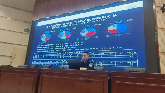 为切实提升人在校员工的反诈防骗意识与能力,筑牢校园安全防线,10月29日下午,太阳集团tyc4633特邀灵昆街道鲲鹏街道派出所李斌警官来校,开展了一场生动而深刻的反诈骗专题教育讲座。本次活动作为公司安全教育工作的重要一环,以警校联动的形式为同学们带来了一堂贴近现实的安全课程。
