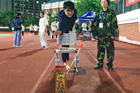 “红途运粮”游戏则是一次身心的挑战与红色精神的体验。同学们需手提代表粮食的大桶矿泉水,穿越重重关卡,从红色历史问答到投壶技巧挑战,再到吹乒乓球的趣味比拼,每一步都考验着参与者的智慧与体力。在共同面对挑战、解决问题的过程中,同学们学会了相互支持、相互鼓励,这种情感的共鸣与心灵的碰撞,对于他们的心理健康与成长具有深远的影响。